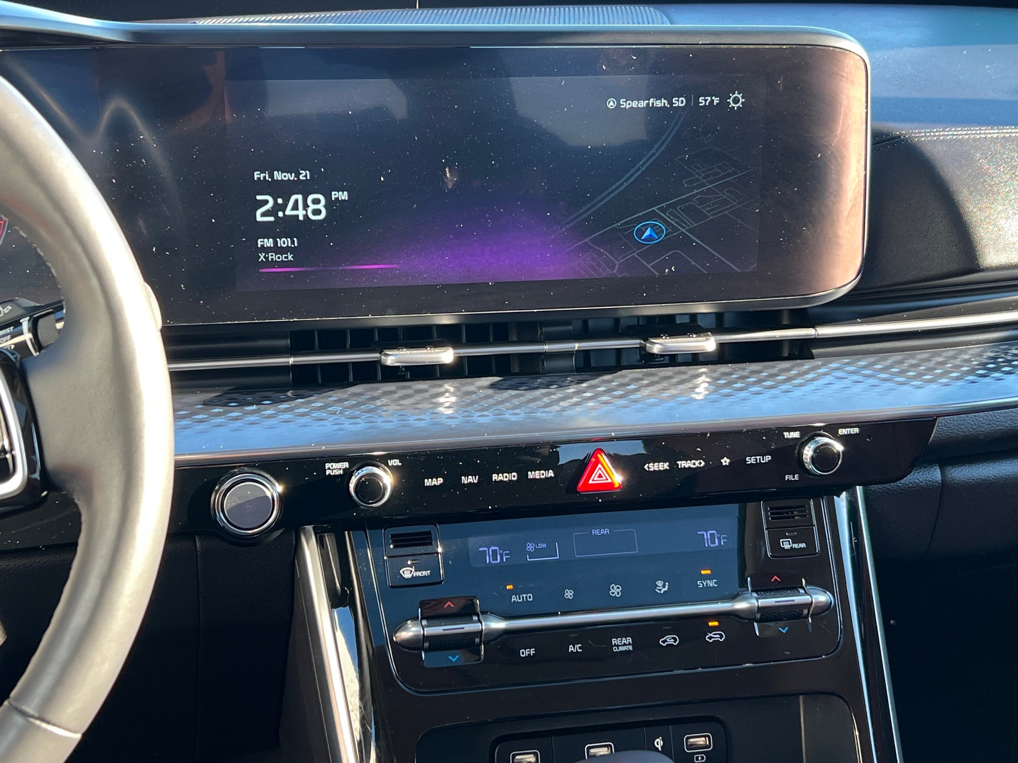 - Heated steering wheel - A warm touch. Trying to drive with bulky winter gloves on isn't always easy. Keep your hands warm in cold temperatures so you can ditch the mitts and get a firm grip with this heated steering wheel.